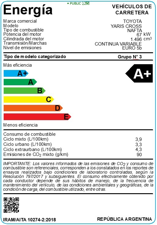 Modelo Etiquetado en CO2 y Eficiencia Energética bajo RESOL-2018-85-APN-SGAYDS#SGP en las condiciones detalladas por https://www.argentina.gob.ar/etiqueta-vehicular
